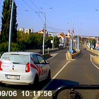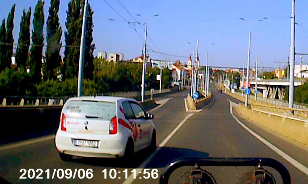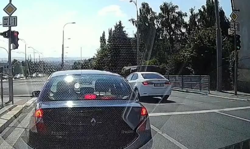 K dalšímu případu došlo dnes po desáté hodině dopoledne, kdy řidič firmy rozvážející jídlo nejprve naprosto nesmyslně předjížděl na mostě Milénia v Plzni, kdy jen o kousek minul betonové hrazení. Jediné, čeho tímto manévrem dosáhl, bylo to, že na křižovatce zůstal stát přímo před vozidlem, které tak nebezpečně předjel.