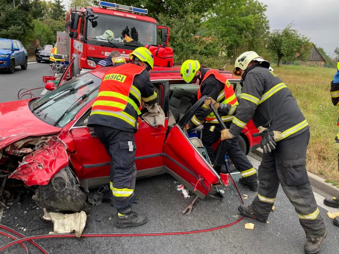 Hasiči ze stanic Plzeň Střed a Plzeň Slovany zajistili místo nehody, zraněného řidiče vyprostili pomocí hydraulické techniky a předali ho do péče záchranářů. "Muže narozeného v roce 1959 jsme při vědomí transportovali na akutní zónu fakultní nemocnice," uvedla tisková mluvčí záchranářů. Druhý řidič utrpěl pouze lehké zranění, které mu záchranáři ošetřili na místě.