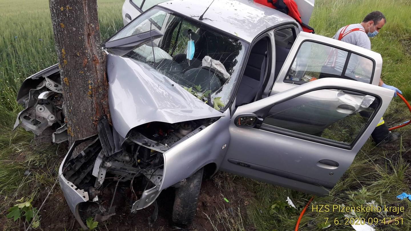 V neděli v půl desáté dopoledne došlo k havárii vozu Renault Thalia do stromu mezi Pavlovskem a Dobřívem. Jednatřicetiletá žena při nárazu utrpěla vážné zranění a po ošetření na místě byla letecky transportována do Fakultní nemocnice Lochotín.