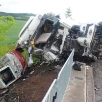 V neděli kolem čtvrté hodiny ráno došlo na 51. kilometru dálnice D5 ve směru z Prahy na Plzeň u sjezdu na Holoubkov k tragické dopravní nehodě, když turecký řidič kamionu se zeleninou v opravovaném úseku dálnice náhle vyjel vpravo do opravované části a v plné rychlosti narazil do zde stojícího bagru. Náraz byl natolik silný, že kamion před sebou tlačil stavební stroj přibližně 70 metrů a poté obě vozidla skončila mimo dálnici. Řidič neměl šanci ve zdemolované kabině přežít.